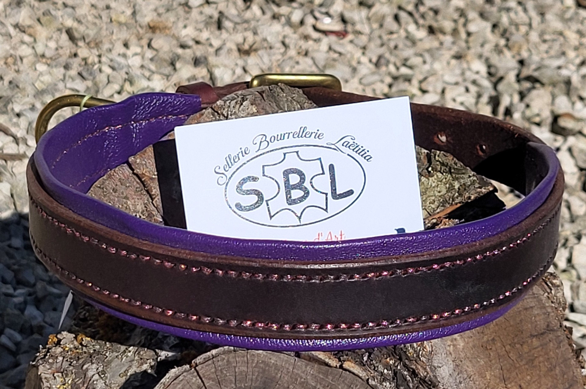 cuir chocolat, doublure violette